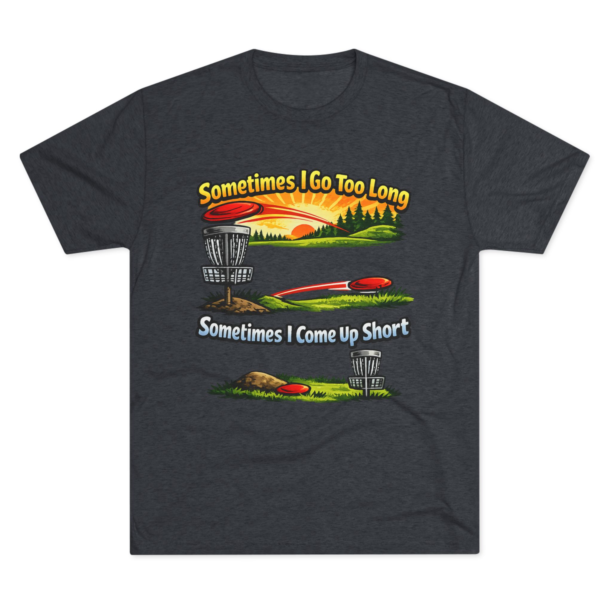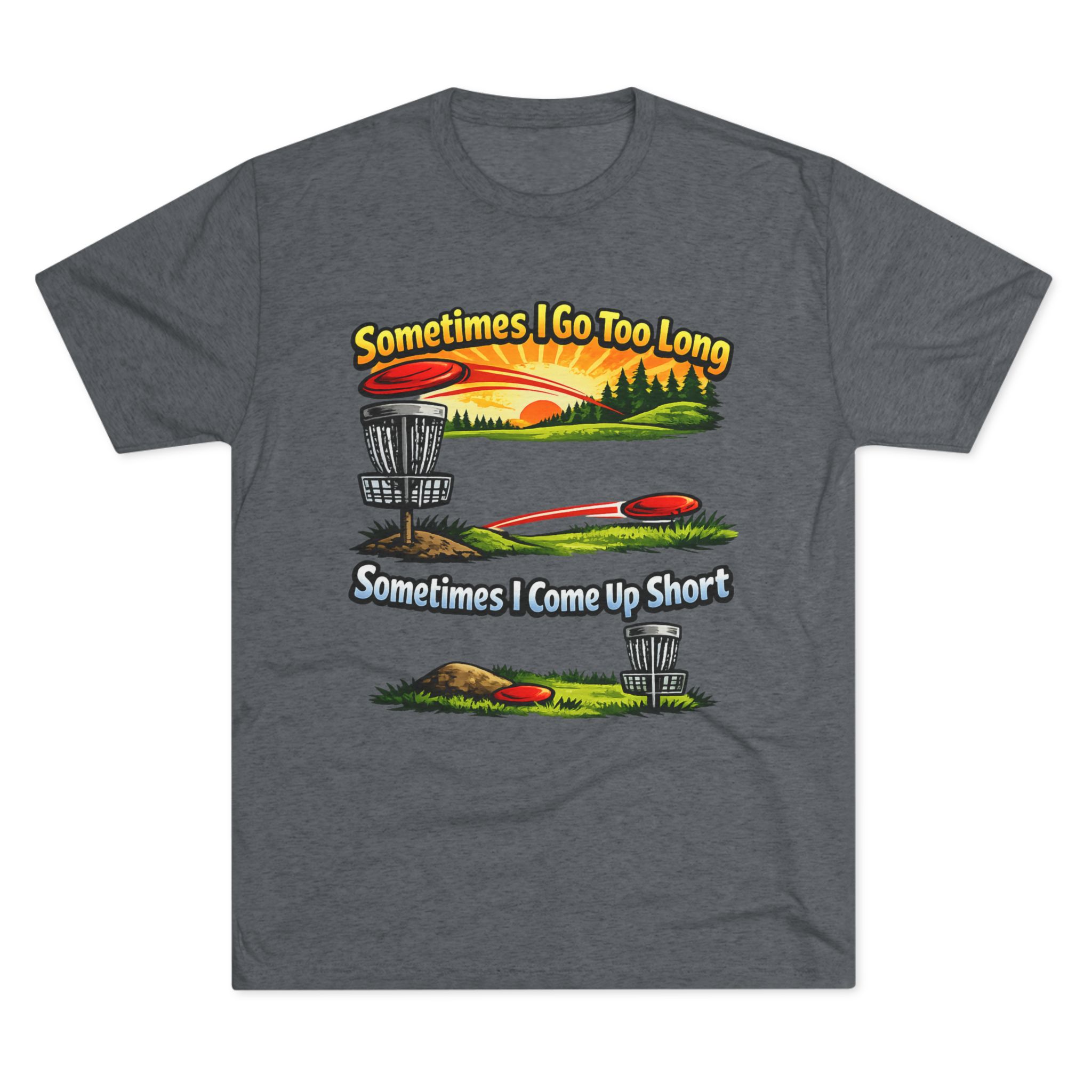 This is a humorous Disc Golf tri-blend shirt in our light armor.